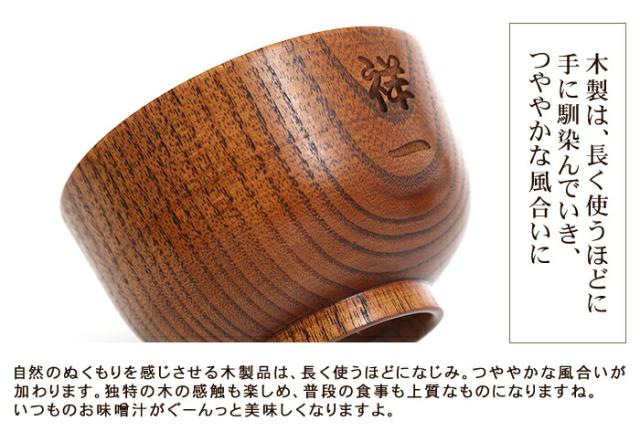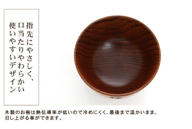 木製のお椀は熱伝導率が低いので冷めにくく、最後まで温かいまま召し上がる事ができます。