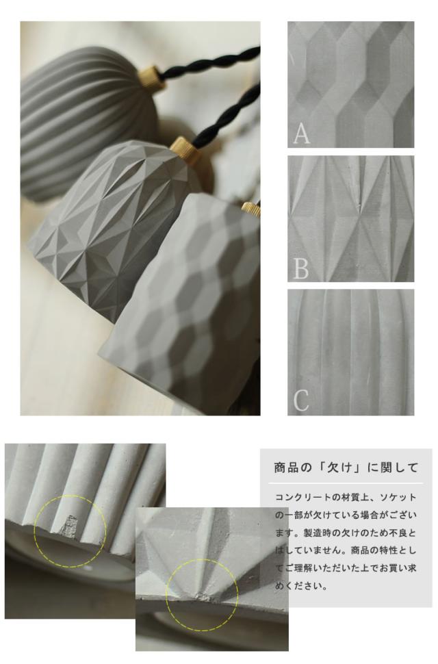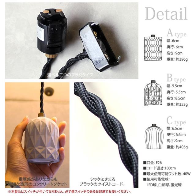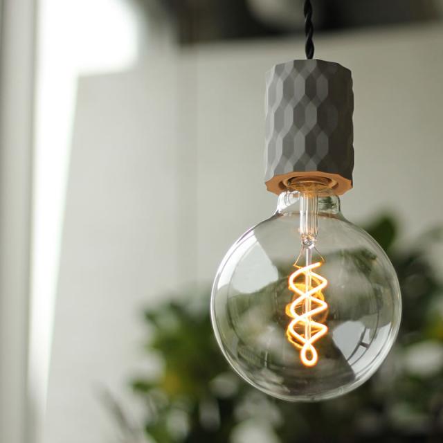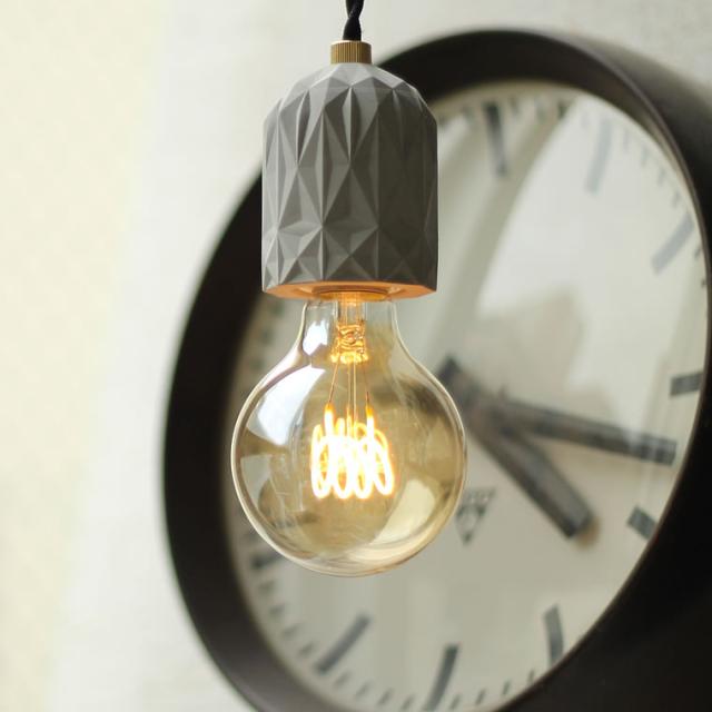 コンクリートソケットに施された造形の陰影が美しく、北欧風、インダストリアル風など様々なインテリアにマッチ。