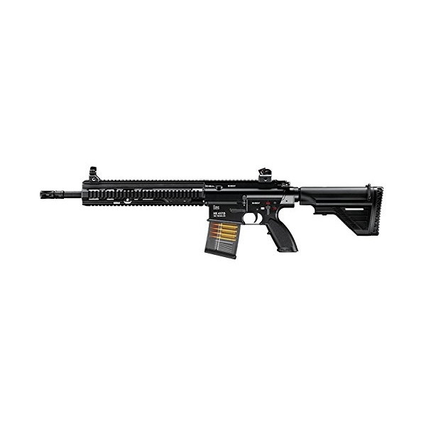 * パッケージ内容:HK417本体、マガジン(装弾数70発)、保護キャップ、取扱い注意・説明書、専用コネクター、チャージャー、チャージングロッド、クリーニングロッド、BB弾(0.2g/200発)、他
