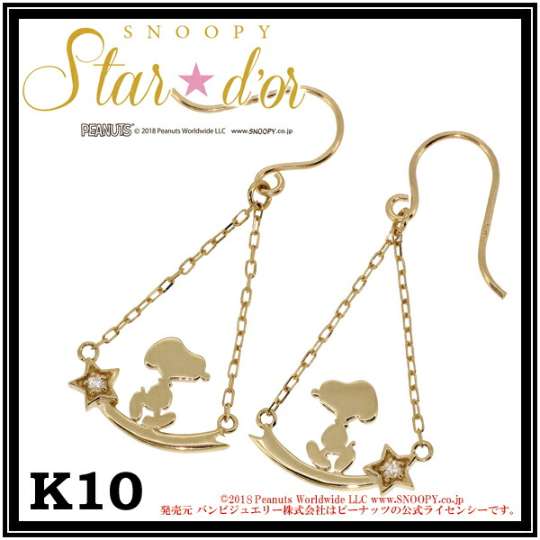 Snoopy スヌーピー ダイヤモンド シューティングスター K10 ピアス 2P 公式 スタードール オフィシャル ジュエリー レディース プレゼント 人気