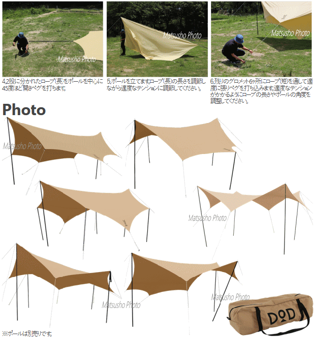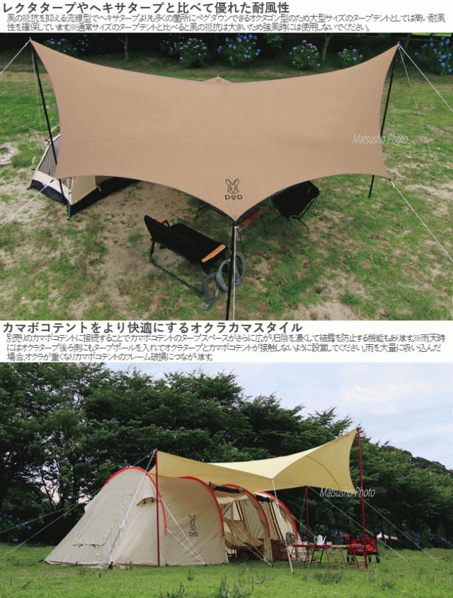 ![]() 張り方自由自在の超大型ポリコットンタープ。 ポリコットン(ポリエステルとコットンの混紡生地)を使用した5.1×5.1mの超大型タープテントです。 8ヶ所の全ての角にポールとグロメットを付ける事ができるため状況に応じて自由自在に張る事が できます。 流線型で風を受け流しロープを張る場所もヘキサタープより多いオクタゴン型のため大型タープ テントながら耐風性に優れています。 ![]() ![]() ![]() ![]() ![]() |