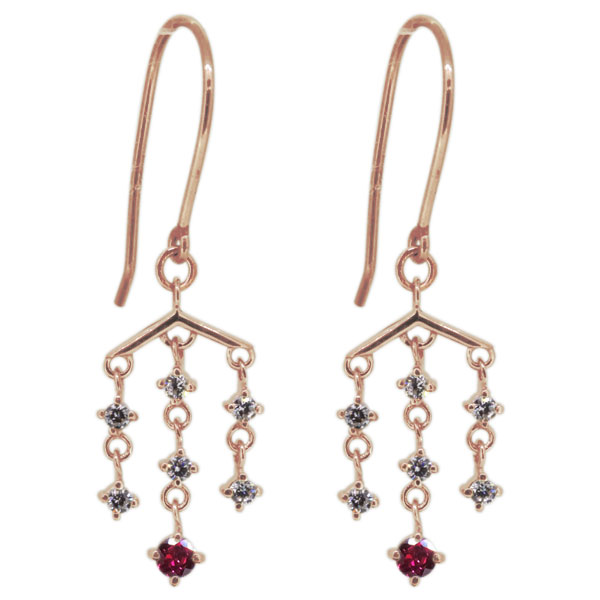 レディースピアス ルビー フックピアス シャンデリア 18金