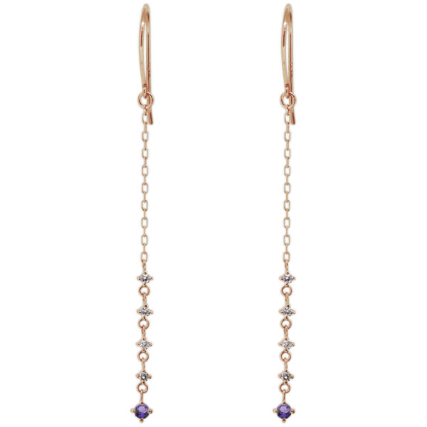 レディース アメジストピアス ロング フックピアス シンプル 18金
