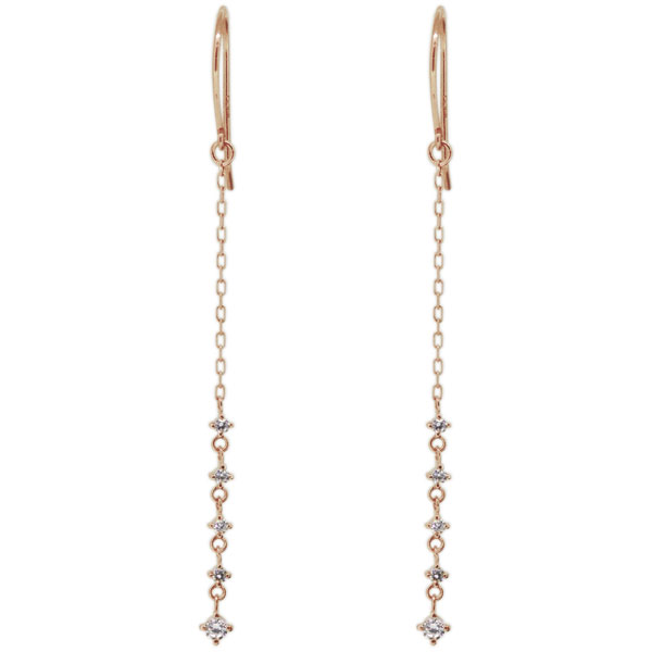 レディース ダイヤモンドピアス ロング フックピアス シンプル 18金