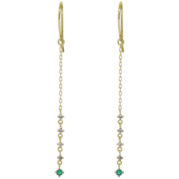 ロングピアス フックピアス エメラルド 10金 ゆれる チェーンピアス かわいい