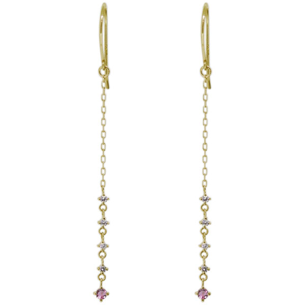 ロングピアス フックピアス ピンクトルマリン 10金 揺れる チェーンピアス かわいい