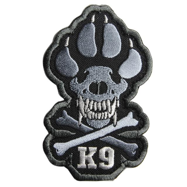 足跡の形に犬の頭蓋骨がデザインされたミリタリーパッチ