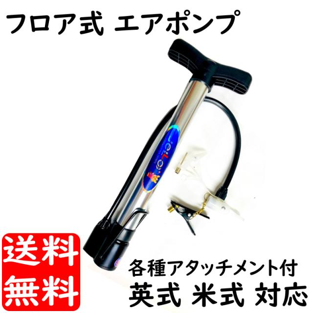 フロアポンプ 空気入れ 英式 米式対応 各種多機能アタッチメント付 【メール便のみ送料無料】