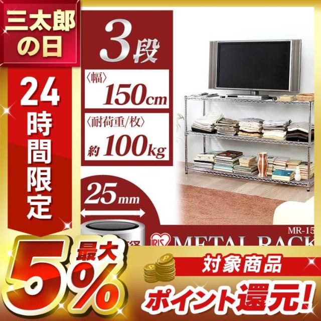 スチールラック 幅150 3段 収納ラック すっきり収納すっきり インテリア シンプル サビ 収納 メタルラック アイリスオーヤマ 収納 シェルフ 棚 収納ラック ラック 業務用 25mm MR-1509 【int】