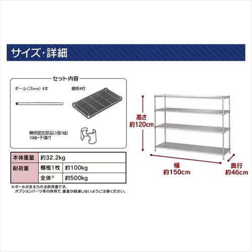 スチールラック メタルラック アイリスオーヤマ 幅150 棚 業務用 25mm 4段 収納 おしゃれ スリム MR-1512 メタル製ラック 【int】