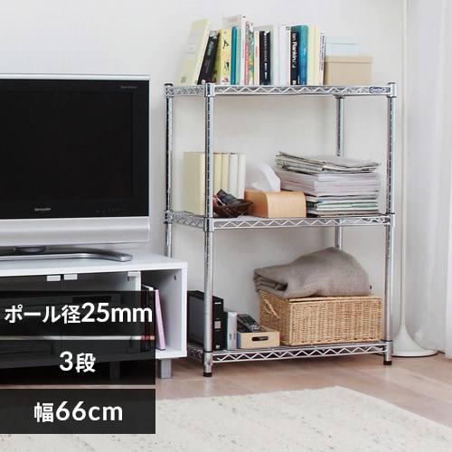 リビング・キッチンなどいろいろな場所で使用できるインテリア製の高いクロームメッキ仕上げのラックです。棚板の高さは自由に変えられます。また、別売部品を使えば、自分だけのオリジナルラックが作れます。組み立てはネジやクギを使わずに簡単に組み立てられます。