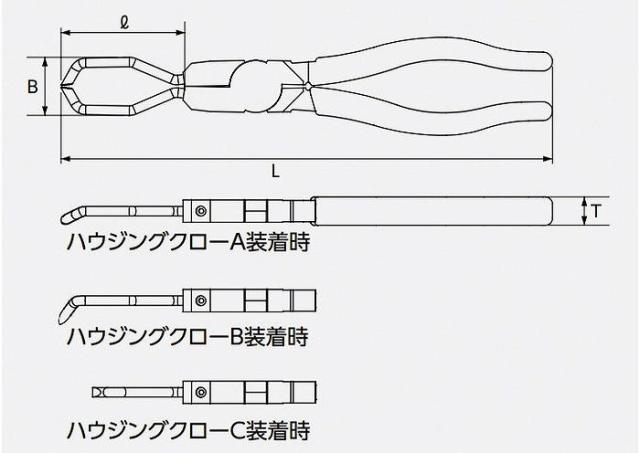 ●本体と3種類のハウジングクロー(A・B・C)のセットです。
