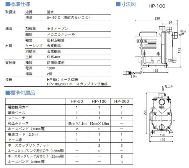 寺田ポンプ 小型 給水ポンプ ハンディーポンプ HP-100 家庭用ポンプ 電動ポンプ 農業用ポンプ