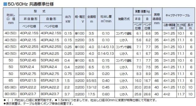 鶴見 水中ポンプ 汚水 汚物用 排水ポンプ 40PU2.25S 0.25kw/100V ツルミポンプ 家庭用 浄化槽 農業用