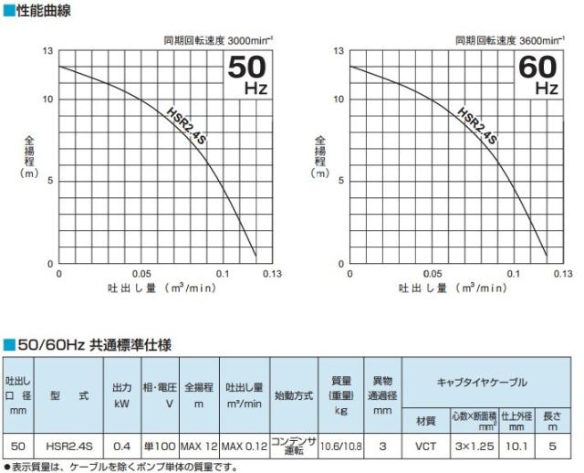 ツルミ 水中ポンプ 低水位 排水ポンプ 汚水一般工事用 HSR2.4S 100V 50mm/2インチ 小型 電動 農業用