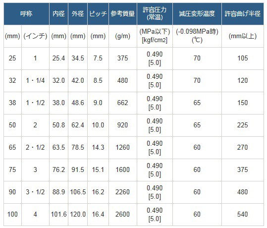 ・補強コード入りで最大許容圧力0.490MPa耐圧性能をそなえています。