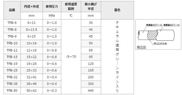 トヨックス トヨフーズホース TFB-6 6mm×100m 飲料水 食品用 耐熱 耐油 ホース