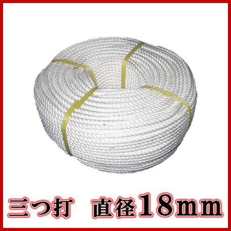 生川 ビニロンS ロープ 3つ打 直径18mm 長さ100m繊維ロープ 非難グッズ 防災グッズ 防災ロープ 非