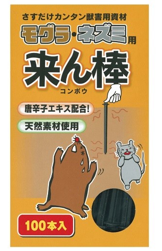 激辛唐辛子エキス 来ん棒 100本 もぐら 害獣撃退 害獣対策 モグラ撃退機 ネズミ駆除 モグラ駆