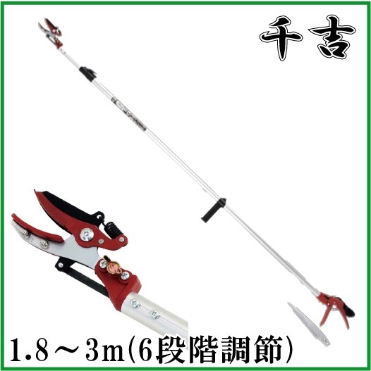 千吉 高枝切りバサミ 高枝切りばさみ SGLP-5 伸縮6段 3M のこぎり付 高枝切鋏 剪定 はさみ ガーデ