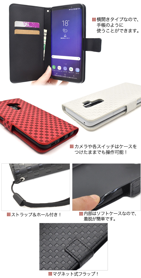 スマホケース Galaxy S9+ SC-03K docomo SCV39 au 手帳型 市松模様 携帯ケース おしゃれ シンプル 和風 和柄 GalaxyS9プラス 携帯カバー 和模様 かわいい お洒落 スマホカバー ビジネススタイル au携帯カバー auスマホ スマートフォンケース お洒落 定番 人気
