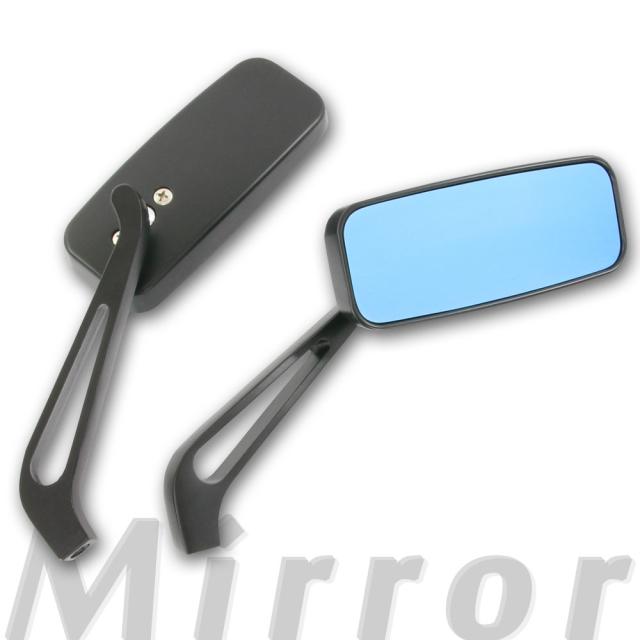 汎用 スリムスクエアミラー マットブラック 取り付けネジ10mm/8mm ブルーミラー 左右セット つや消しブラック【バイク用品 ミラー その他】