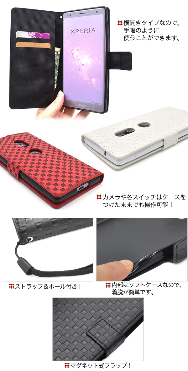 スマホケース Xperia XZ2 SO-03K SOV37 702SO用 手帳型 市松模様 携帯カバー 和風 和柄 シンプル かわいい 携帯ケース キズ防止 汚れ防止 スマホカバー 装着簡単 可愛い おしゃれ 和模様 保護カバー 格子柄 auスマホ au携帯カバー 人気 定番