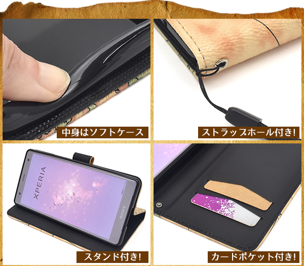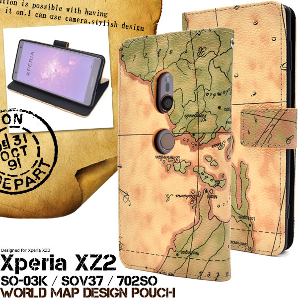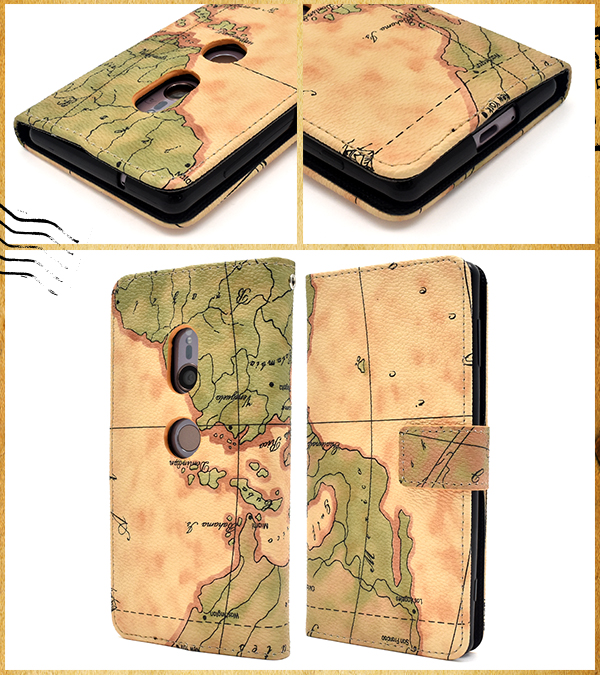スマホケース Xperia XZ2 SO-03K SOV37 702SO用 手帳型 ワールドデザイン 携帯ケース 地図柄 携帯カバー おしゃれ かわいい 保護カバー スマホカバー 世界地図 マップ柄 地図模様 アンティーク風 アンティーク調 傷防止 汚れ防止 auスマホ au携帯カバー 人気 定番
