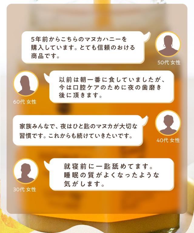 ・マヌカハニーは採取時期・地域によって色味が異なる場合がございますが、品質面での影響はございません。
