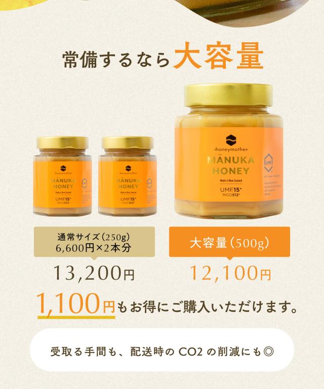 ※UMF/MGOはマヌカハニーの活性力を示す指標です。また、MGOは"MG"と表記される場合がございます。