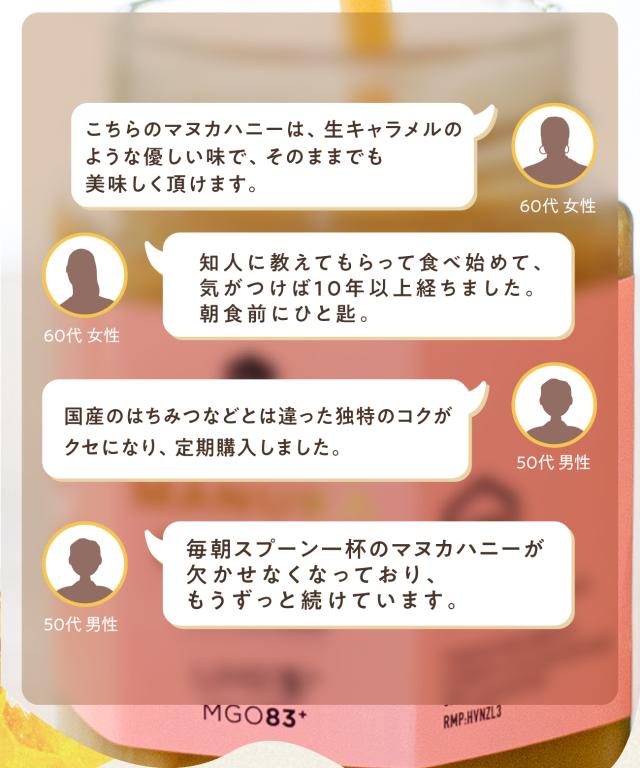 ・マヌカハニーは採取時期・地域によって色味が異なる場合がございますが、品質面での影響はございません