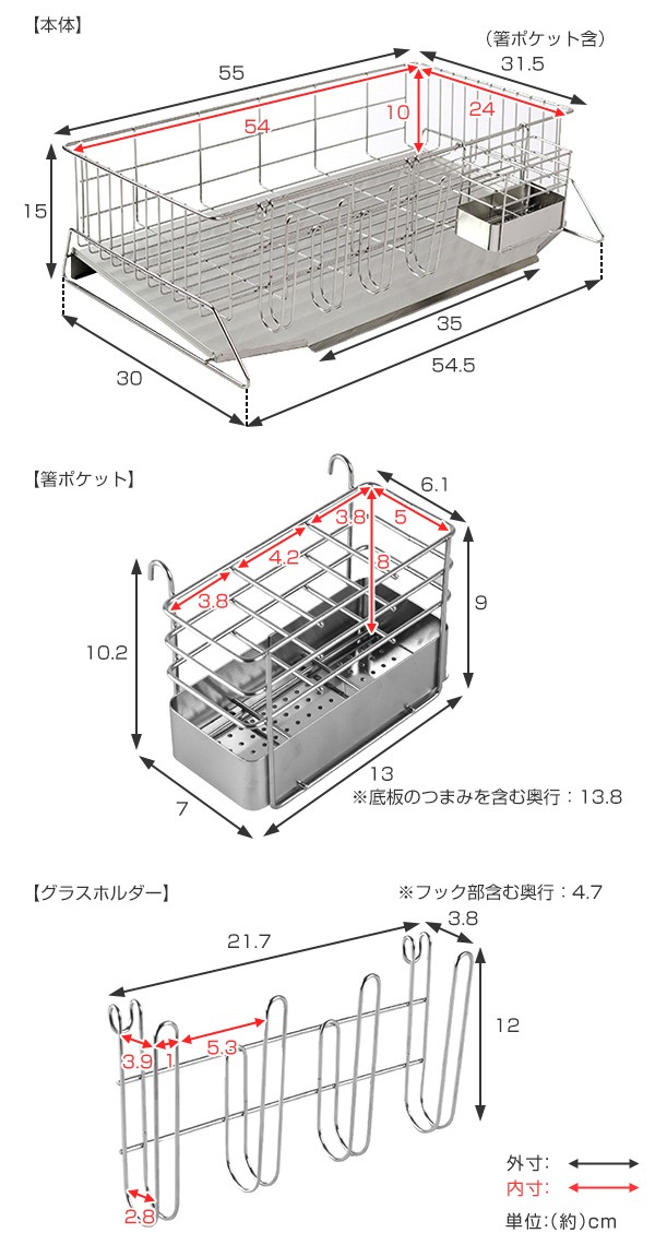 | 材質 | 本体・グラスホルダー・箸ポケット:18-8ステンレス 斜めトレー:18-0ステンレス 脚キャップ:ポリエチレン |