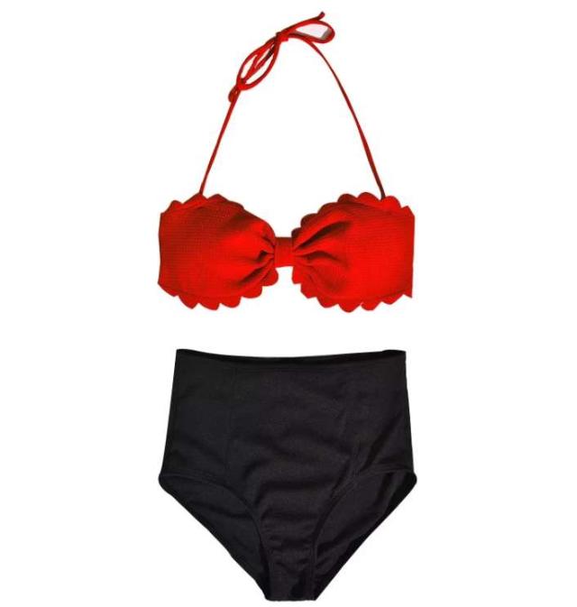 体型カバー 水着 ビキニ 大きいサイズ レディース 2019年新作 ビーチウェア 40代 30代 20代 双子コーデ バンドゥ スカラップ フリルカット ハイウエスト 2WAY ホルターネック セットアップ 無地 シンプル 着やせ 韓国 ママ水着 オシャレ XL 海 プール