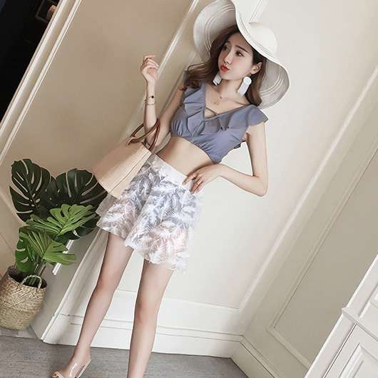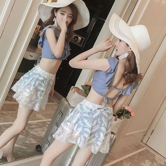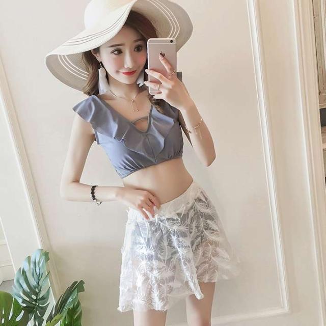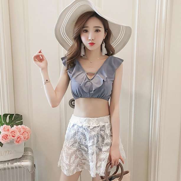 水着 体型カバー 大きいサイズ 3点セット ビキニ レディース 2019新作水着 40代 パッド付き フリル セクシー リボン ママ くびれ 着痩せ 背中開き レース 可愛い オシャレ 海 プール 上品 Vネック レーススカート 韓国 胸元セクシー リゾート 海外 ビーチ 旅行