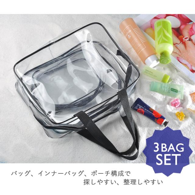ビーチバッグ 3点セット プールバッグ クリア トートバッグ 透明 ビニールバッグ クリア 防水 トート 痛バッグ ゆうパケット便送料無料