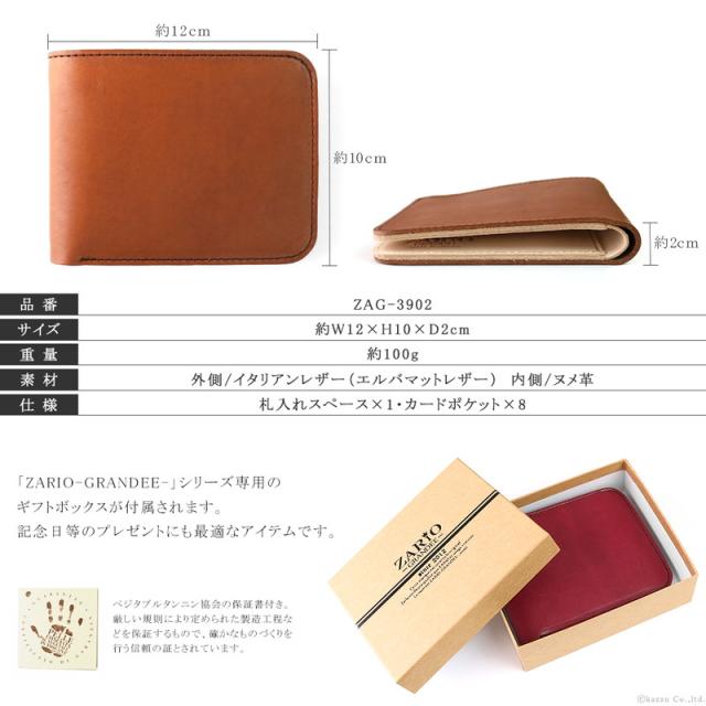 折り財布 メンズ レディース エルバマットレザー イタリアンレザー 本革 日本製 ZARIO GRANDEE ザリオグランデ【ZAG-3902】 ブランド 人気