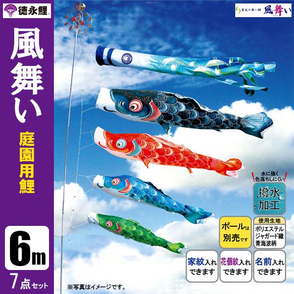 こいのぼり 庭園用 6m7点セット 風舞い 鯉のぼり ポール別売り 徳永鯉のぼり 撥水 はっすい