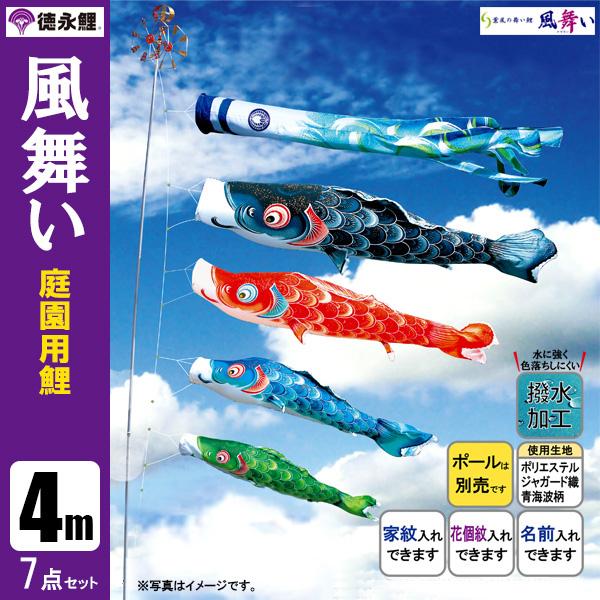 こいのぼり 庭園用 4m7点セット 風舞い 鯉のぼり ポール別売り 徳永鯉のぼり 撥水 はっすい