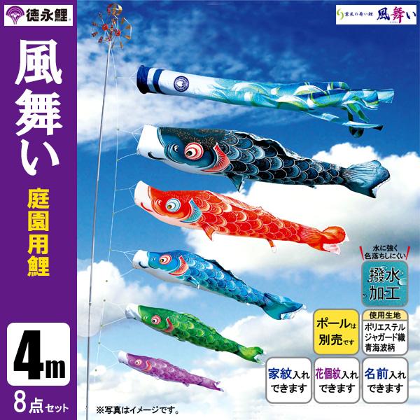 こいのぼり 庭園用 4m8点セット 風舞い 鯉のぼり ポール別売り 徳永鯉のぼり 撥水 はっすい