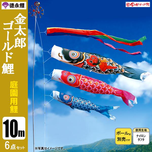 鯉のぼり 庭 園用 10m6点セット 金太郎ゴールド鯉 こいのぼり ポール別売り 徳永鯉のぼり