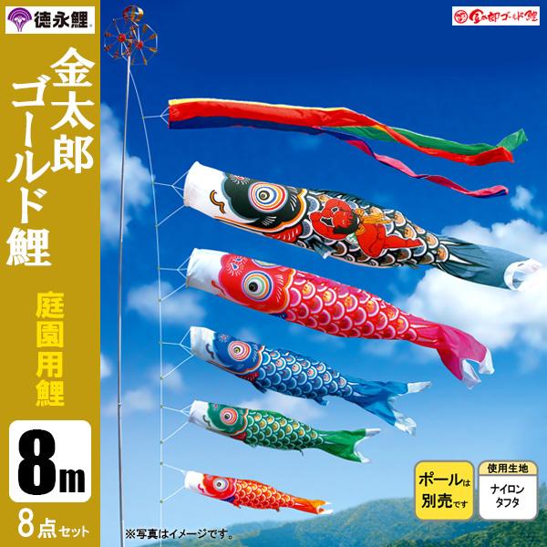 こいのぼり 庭園用 8m8点セット 金太郎ゴールド鯉 鯉のぼり ポール別売り 徳永鯉のぼり