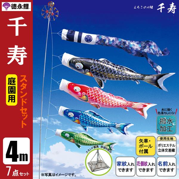 こいのぼり 庭園用スタンドセット 4m7点セット 千寿 鯉のぼり スタンドポール付き 徳永鯉のぼり 撥水加工
