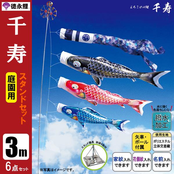こいのぼり 庭園用スタンドセット 3m6点セット 千寿 鯉のぼり スタンドポール付き 徳永鯉のぼり 撥水加工
