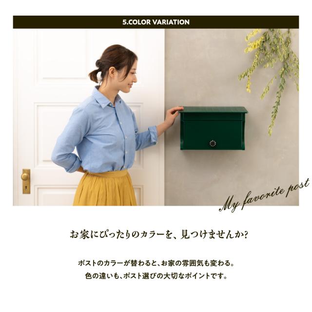大容量ながらシンプルな落ち着いたグリーンのデザイン。和風、洋風を問わず、モダンな多くの玄関を自然に彩ります。玄関や壁の色に寄らず、オシャレに飾るデザインです。さらに、カバポストのメーカー保証は5年間。長く風雨にさらされる郵便ポストだからこそ、しっかりとしたアフターサービスを行っております。詳しくは付属の保証書をご確認ください。