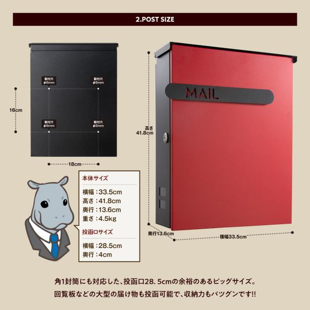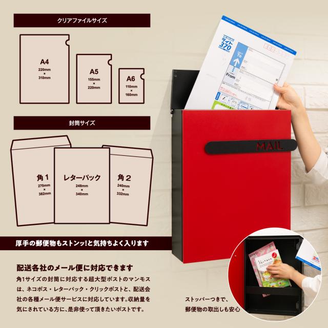 ポスト 大型 ポスト郵便受け 壁掛け 鍵付き おしゃれ ポスト レターパックA4 通販 赤 郵便ポスト 和風 鍵 壁掛けポスト 鍵付大型ポスト 鍵付ポスト ゆうびんぽすと 郵便受け・メールボックス ぽすと お洒落ポスト 通販 郵便ポスト大型 マンモス