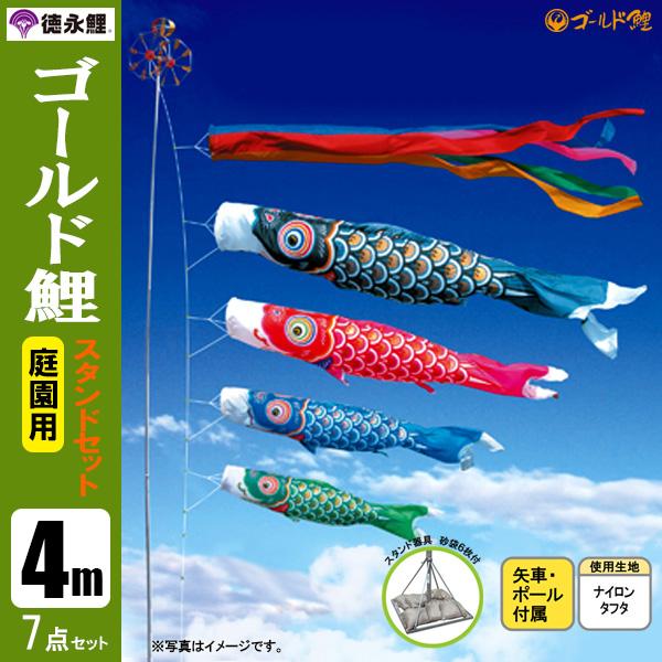 こいのぼり 庭園用スタンドセット 4m7点セット ゴールド鯉 鯉のぼり スタンドポール付き 徳永鯉のぼり