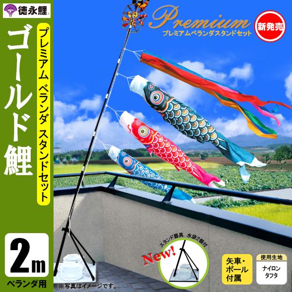 鯉のぼり マンション ベランダ こいのぼり 2mセット ゴールド鯉 徳永鯉のぼり スタンド式(水袋付)