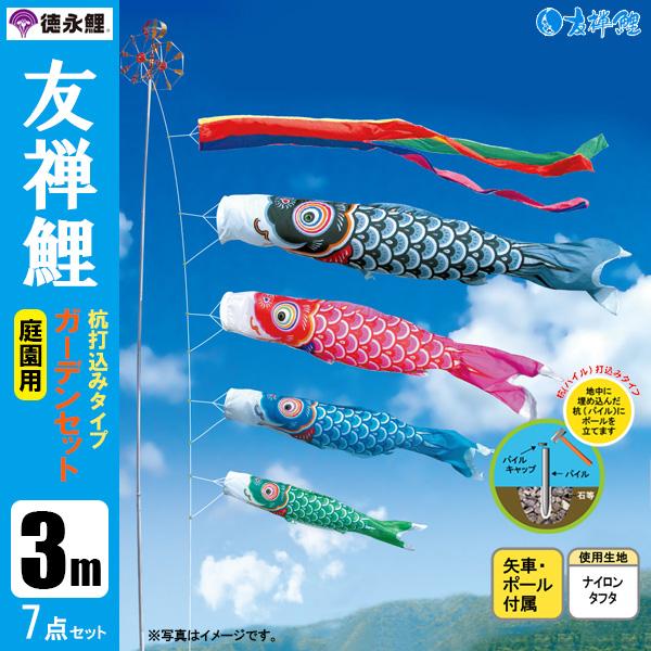 こいのぼり 庭園用ガーデンセット 3m7点セット 友禅鯉 鯉のぼり 打込式ポール付き 徳永鯉のぼり