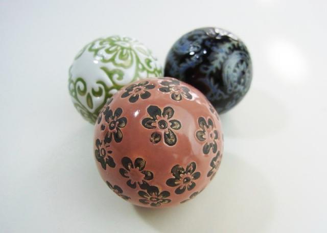 陶器浮き玉中 3個セット ピンク φ4cm made in china