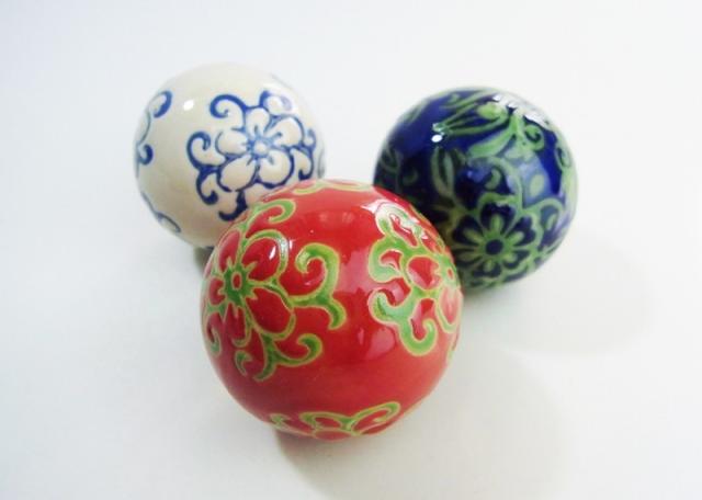 陶器浮き玉中 3個セット 赤 φ4cm made in china